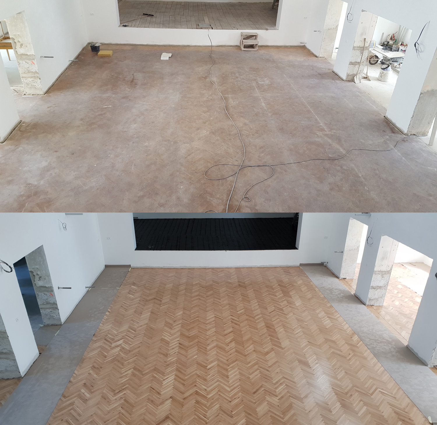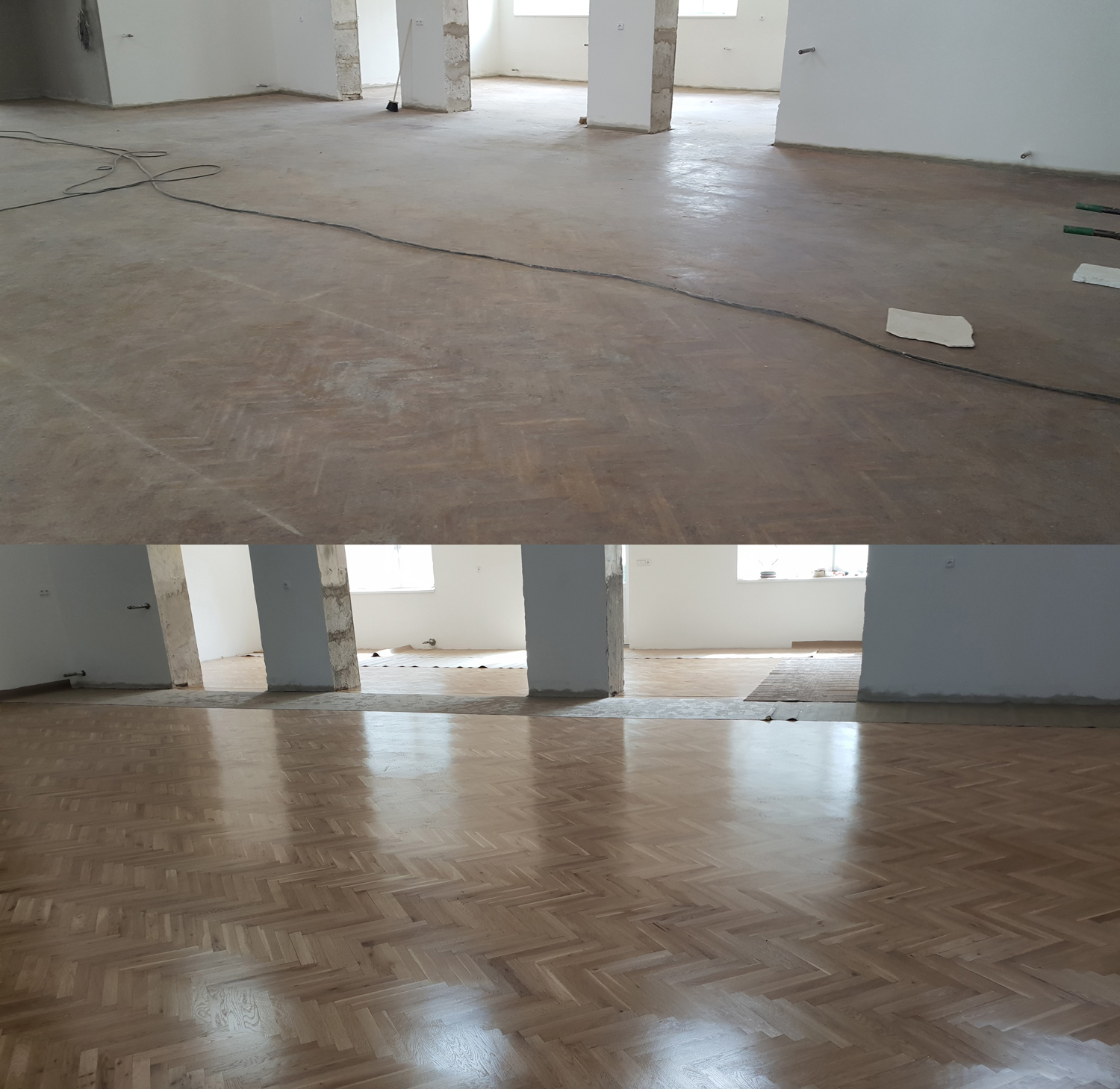 Renovace parket a pokládka nových parket v kulturním domě. V hlavním sále byl velice odolný lak, který se obtížně brousil. Na balkóně byly položeny nové parkety. Podlaha byla nalakována velmi odolným, dvousložkovým lakem.